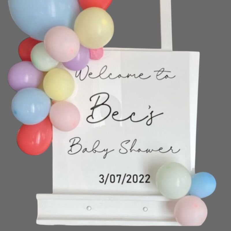 Baby Shower Welcome Board White acrylic 50 x 50cm With your choice of wording.