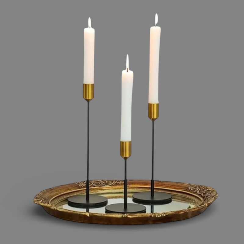 Candlestick Holders - Black & Gold (34 available) 13.5cmH - 7 available 18.5cmH - 7 available 22cmH - 9 available 27cmH - 7 available 32cmH - 7 available