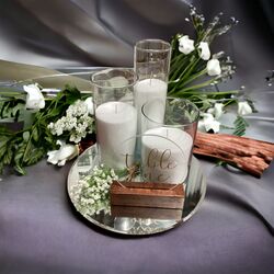 Candle Cylinder Vases Candle Cylinder Vases Sets of 3 17 available - 28cmH x 8cmW or 17 available - 23cmH x 10cmW 17 available - 17cmH x 12 cmW Crystal Sand Wax available on request