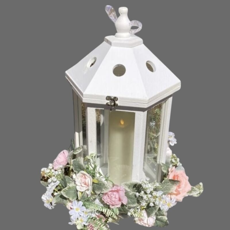 Lanterns - Large White Wooden (25x29x50cmH) (2 available) (Candle and Flowers not included)