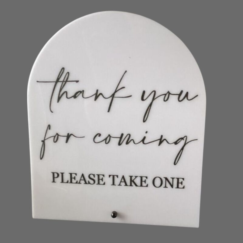 Thank you for Coming - Sign 20cm x 24cm White Arch with Black writing.