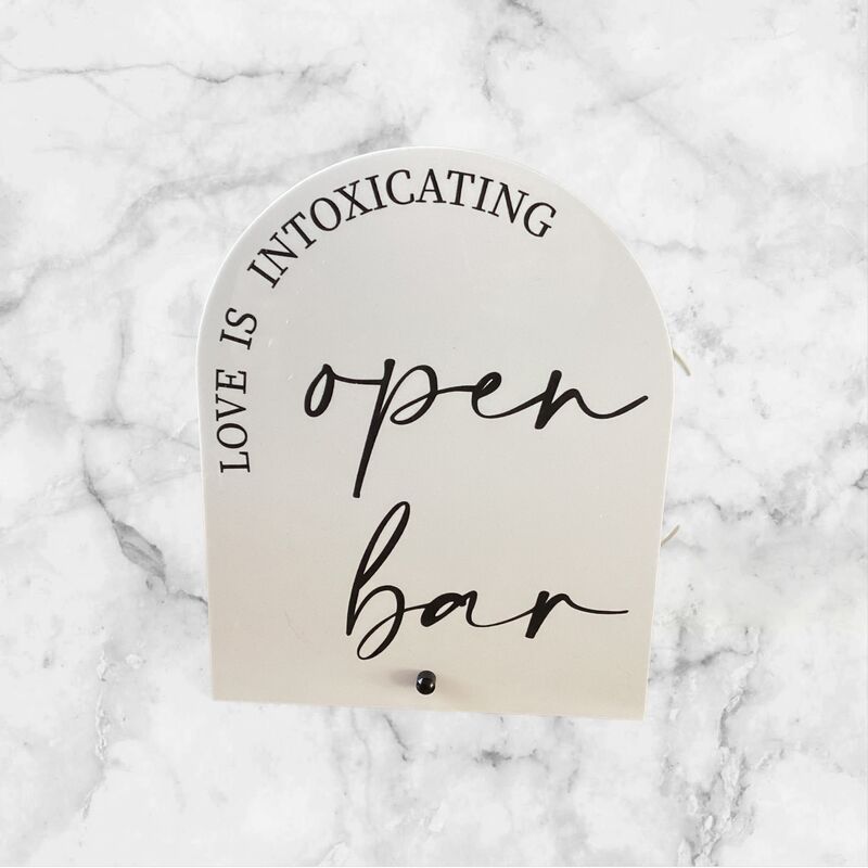 Open Bar - Sign - White Arch with Black 24cmH x 20cmW