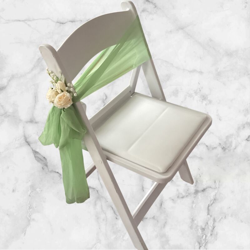 Ceremony Aisle Chair Sashes - Sage Green Chiffon (16 available) For Aisle Chairs or Pews (Set of 10 with aisle flowers)