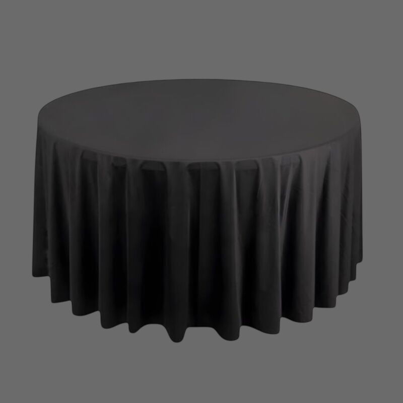 Tablecloths - Black Round 305cm Polyester (6 available) Price includes Laundry Fee