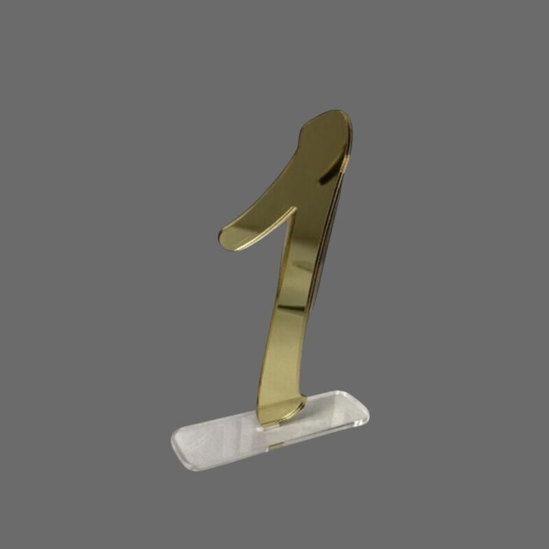 Table Numbers - Acrylic Gold Mirror 1-10 available Gold number on clear base.