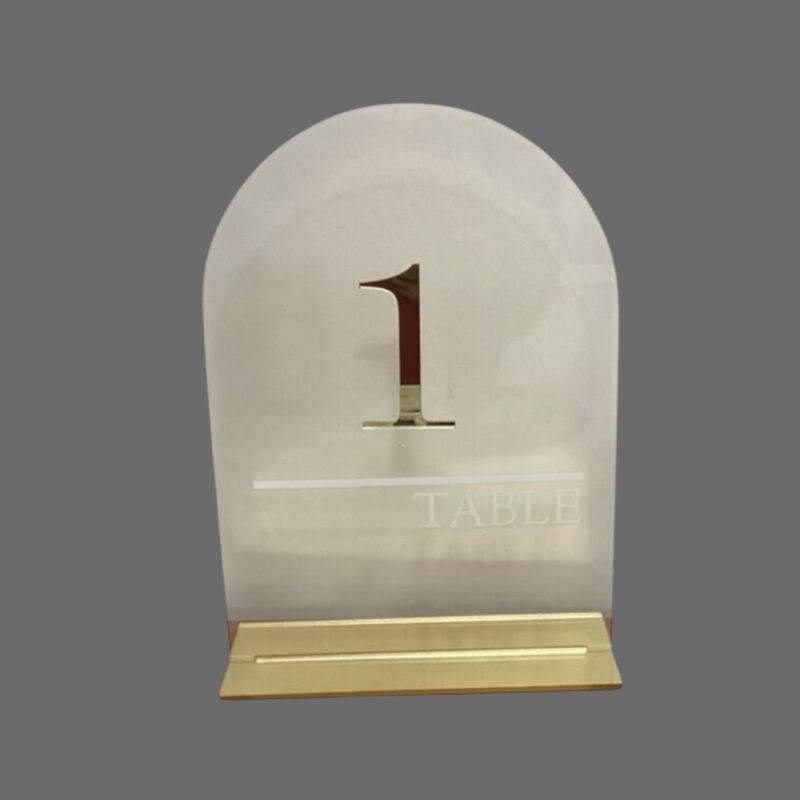 Table Numbers - Acrylic Clear with Gold Number and Gold Stand 1-20 available