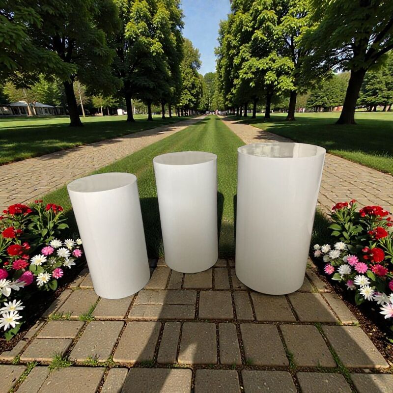 Plinths - White Round Metal 50 cm, 55cm, 60cm. Black or Gold Covers available